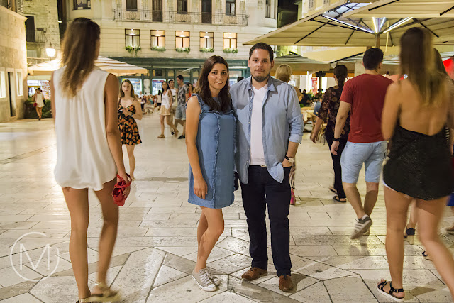 Inside the walls of this old town structure you can find many things. From small and narrow streets to squares filled with people. It's interesting how the dynamic in the city keeps changing. You can find almost empty places inside the old walls and then you turn a corner and you are surrounded by lots of other tourists and locals.You can stop at many places here and simply gaze at the beauty of the old town. For example the next image shows my sister Jasmina and her boyfriend Amer standing on the cobble street looking at the shop display. I moved back a bit and the view showed the arches of the town as well as the surrounding houses. Everything is lit up beautifully at night, with attention payed to every detail.