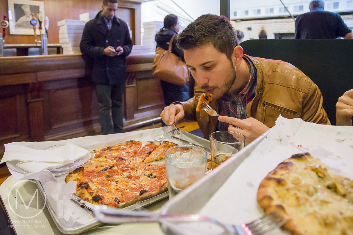 We had a bit of a shock when we arrived in New Haven, since it started snowing! While the day hadn't stated out that way, it did start to snow around the city premise. Luckily for us, the snow wouldn't catch on or turn to ice (we had some driving ahead), but it ruined our exploration of New Haven completely since it was ice cold outside. We did have umbrellas but with the camera gear and the rest of our things moving around was very hard. We found a great coffee shop filled with students on their laptops.Frank Pepe's Pizza
