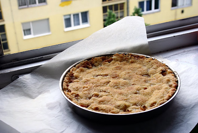To Make Filling: Mix together 3/4 cup sugar, 3 tablespoons flour, cinnamon, and nutmeg, lemon juice and cornstarch. Sprinkle over apples and put it into a saucepan and cook them on low for 20 minutes. Spread evenly in unbaked pie shell.
